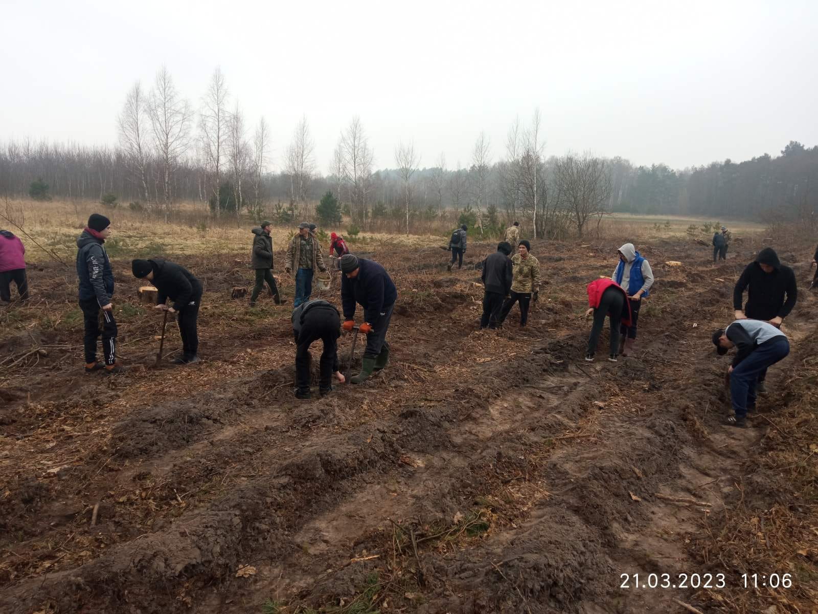 Похмура та вітряна погода не завадила учням 21 та 24 груп разом з майстрами виробничого навчання Грицайчуком П.С. та Гуком А.В. долучитись до традиційної висадки лісу![]()