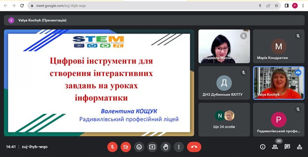 12 грудня на онлайн засіданні обласної методичної секції Валентина КОЩУК презентувала учасникам власний досвід роботи, що до використання сучасних онлайн інструментів, для інтерактивного наповнення уроків.