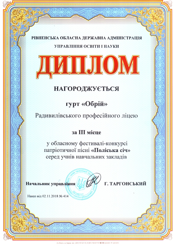 Гурт привіз нашому закладу III – місце.