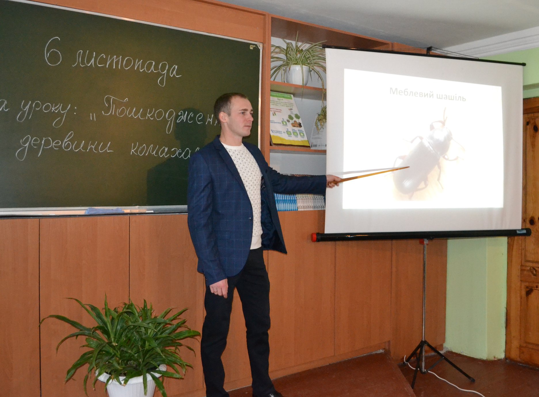 Учні груп №2 та №24, які навчаються в ліцеї за професією “Столяр будівельний. Монтажник гіпсокартонних конструкцій” вивчають пошкодження деревини комахами на бінарному уроці з матеріалознавства столярів та біології.