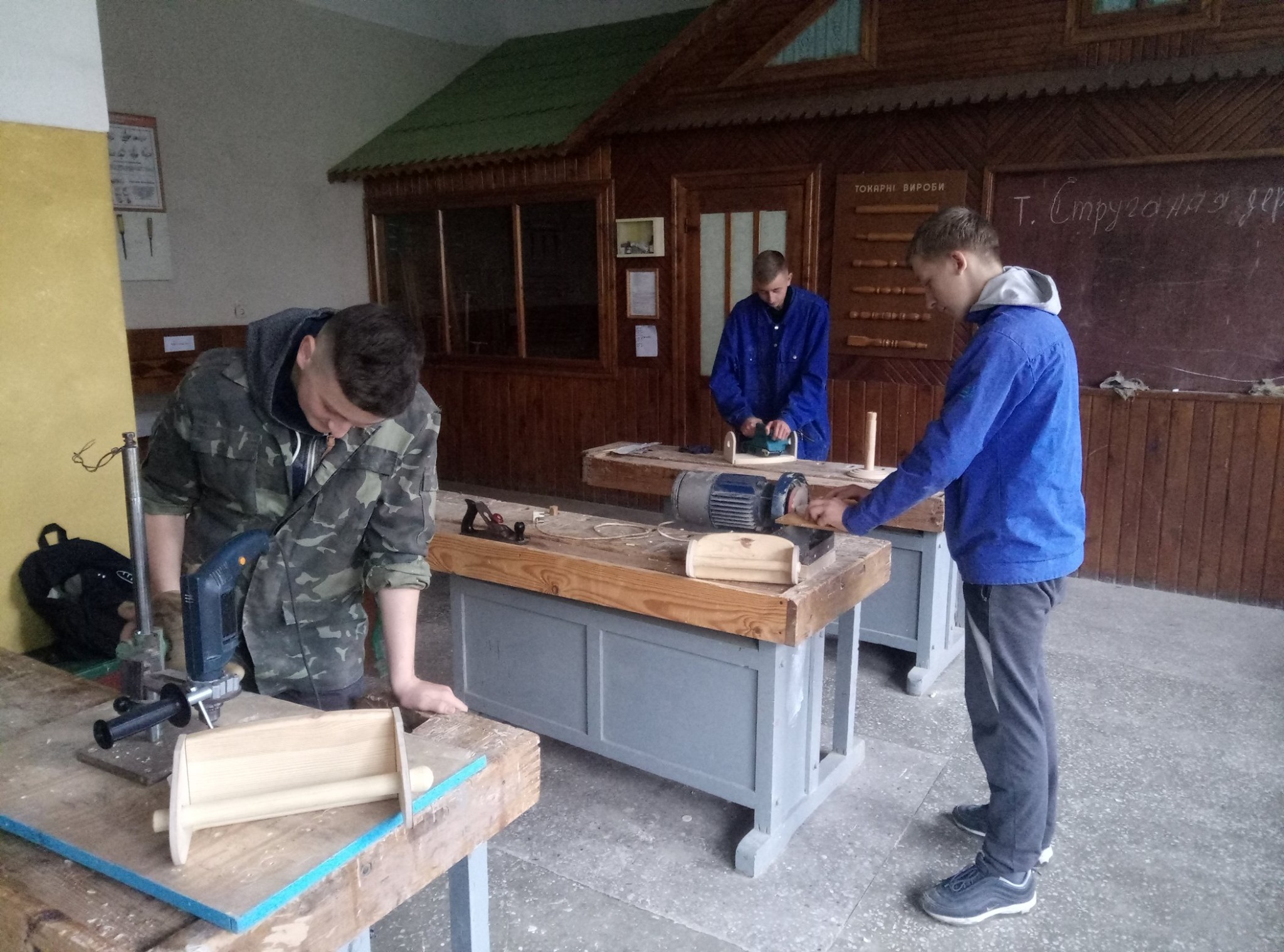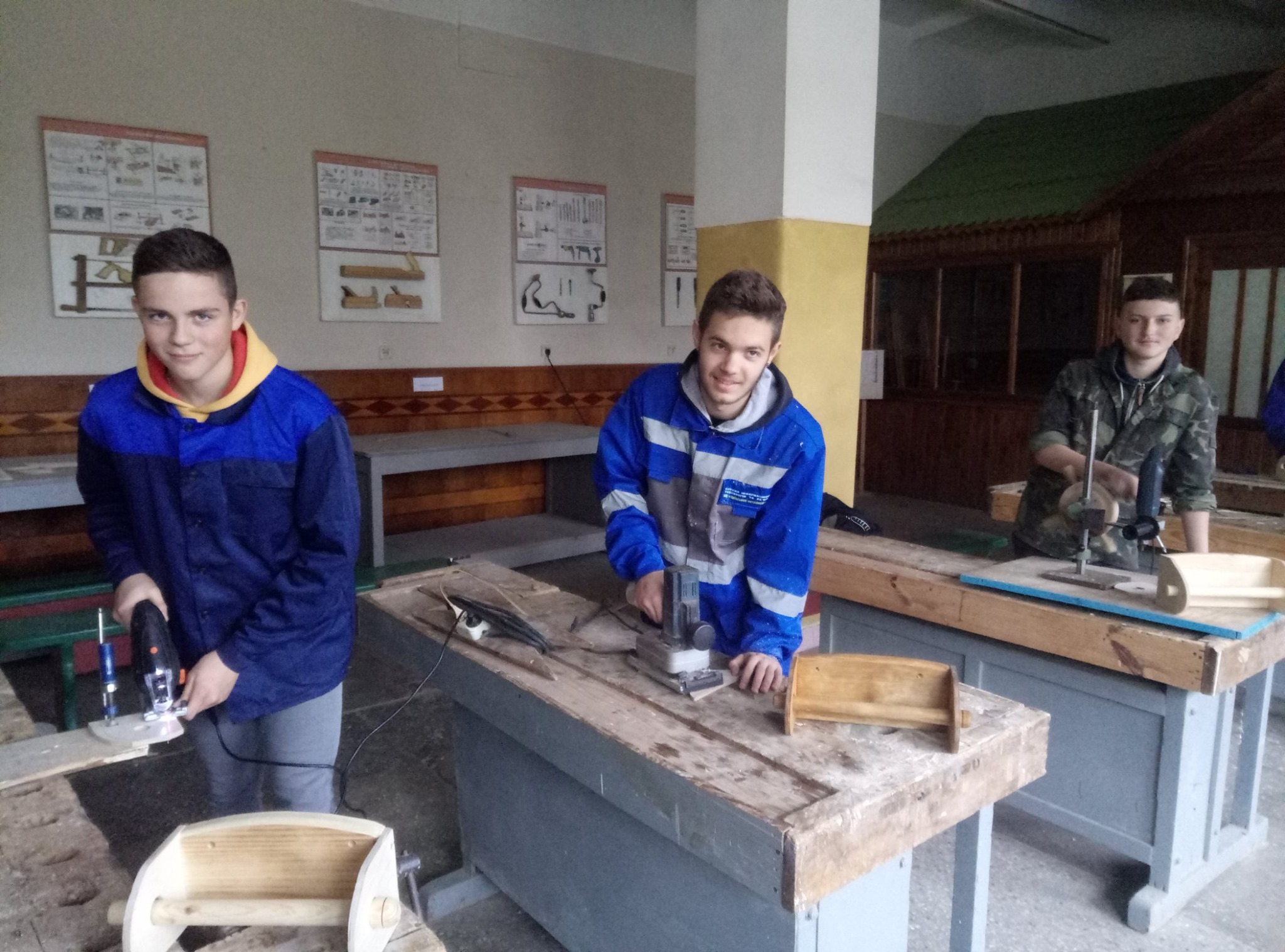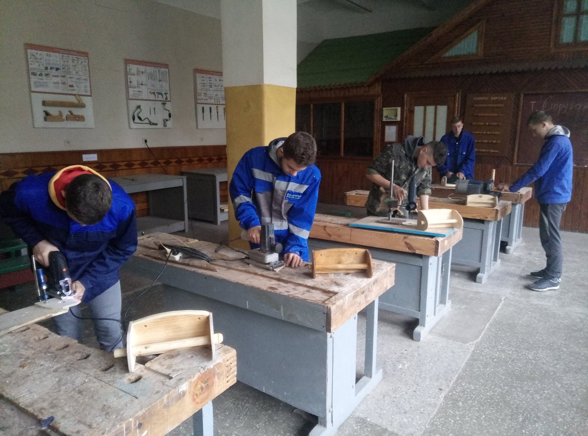 Учні першого курсу «Столяр будівельний, монтажник гіпсокартонних конструкцій» разом з майстром Ревком М.В. на уроці виробничого навчання виготовляють полички для паперових рушників. При виготовленні виробу, майбутні майстри проходять та успішно засвоюють велику кількість технологічних операцій з деревообробки. Поличками планується забезпечити учнівський гуртожиток. Крім того діти порадують своїх батьків, коли привезуть свої найкращі роботи додому.