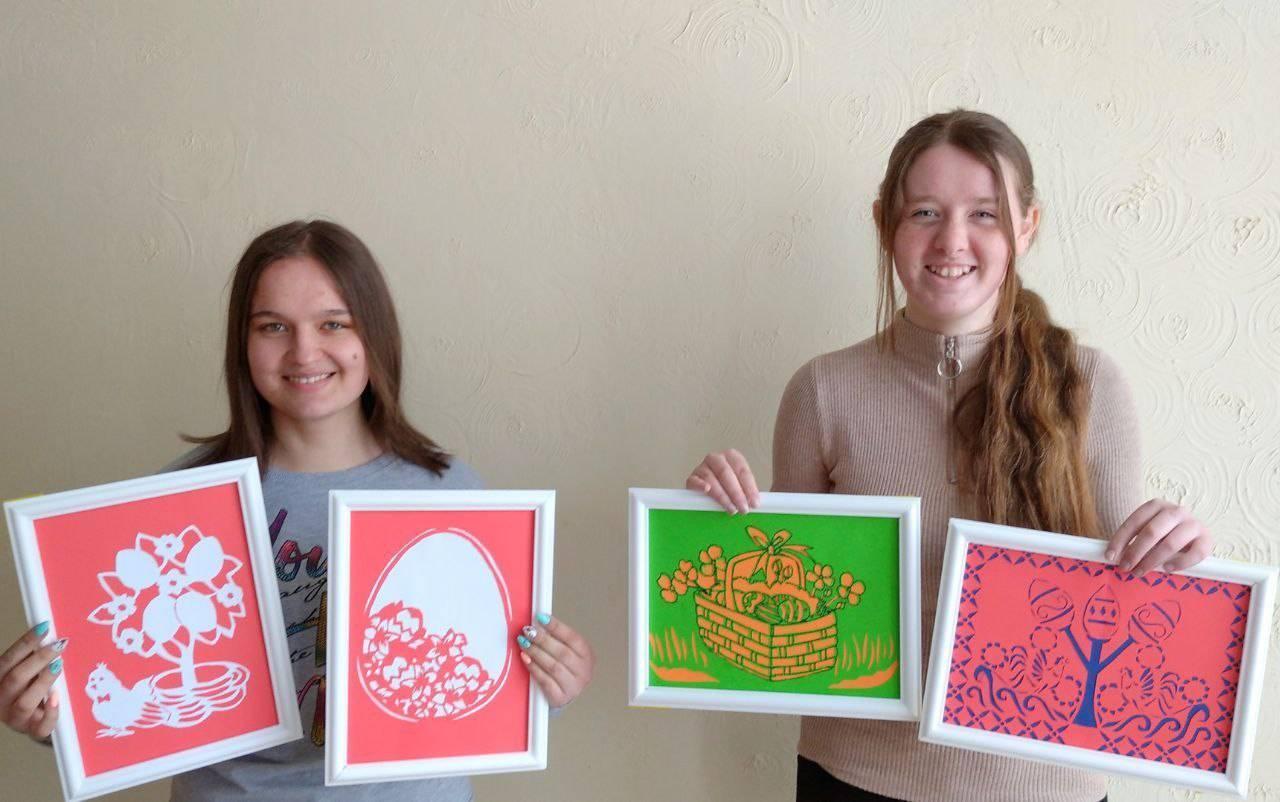 Учні що відвідують гурток “Дизайн інтер’єру” дарують виставку витинанок, завдяки творчій фантазії, створили неповторну Великодню атмосферу у закладі.