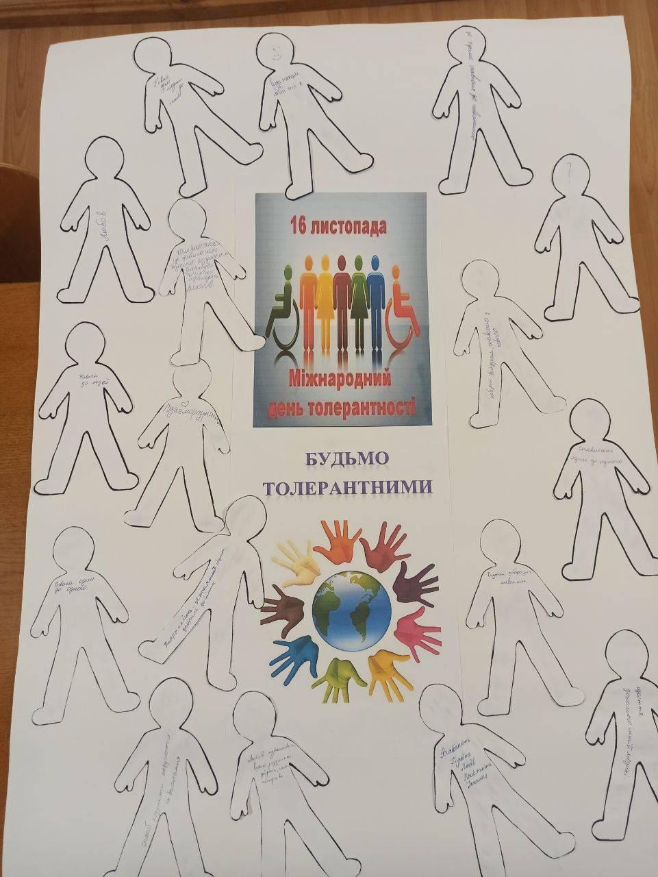 16 листопада відзначається Міжнародний день толерантності. Вже вкотре психологічною службою закладу освіти проводяться заходи, спрямовані на формування ціннісних установок на толерантне спілкування, вироблення навичок толерантної поведінки, звичок; виховання чуйності, взаємоповаги, людяності, терпимості і небайдужості!