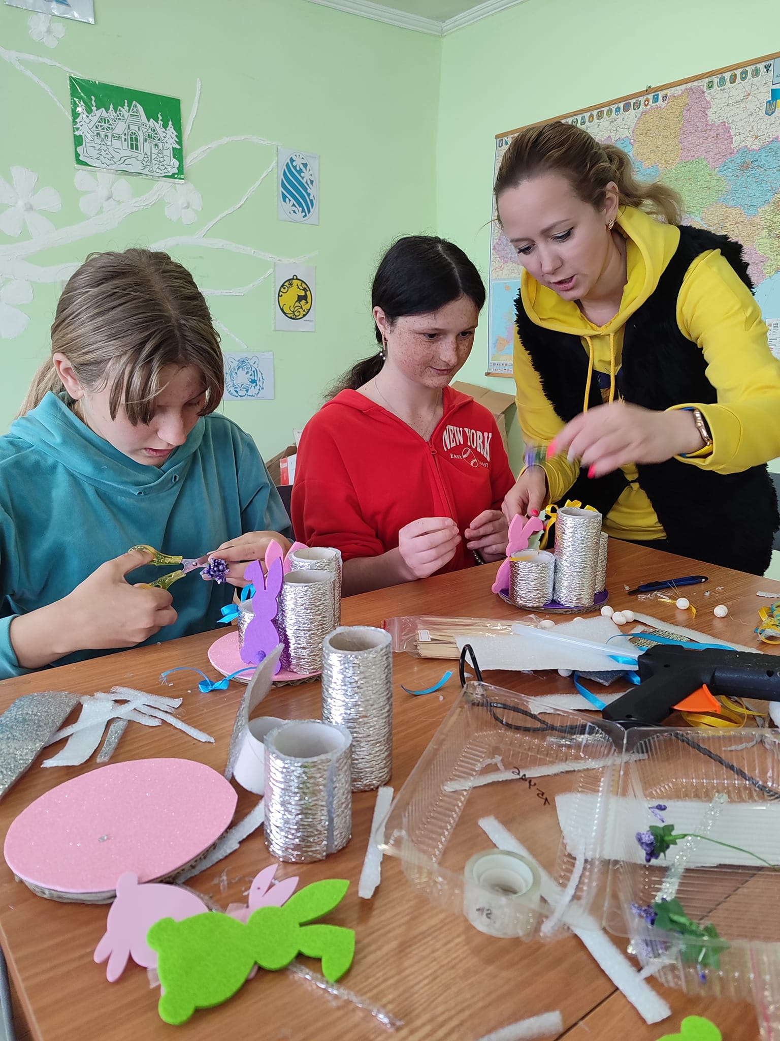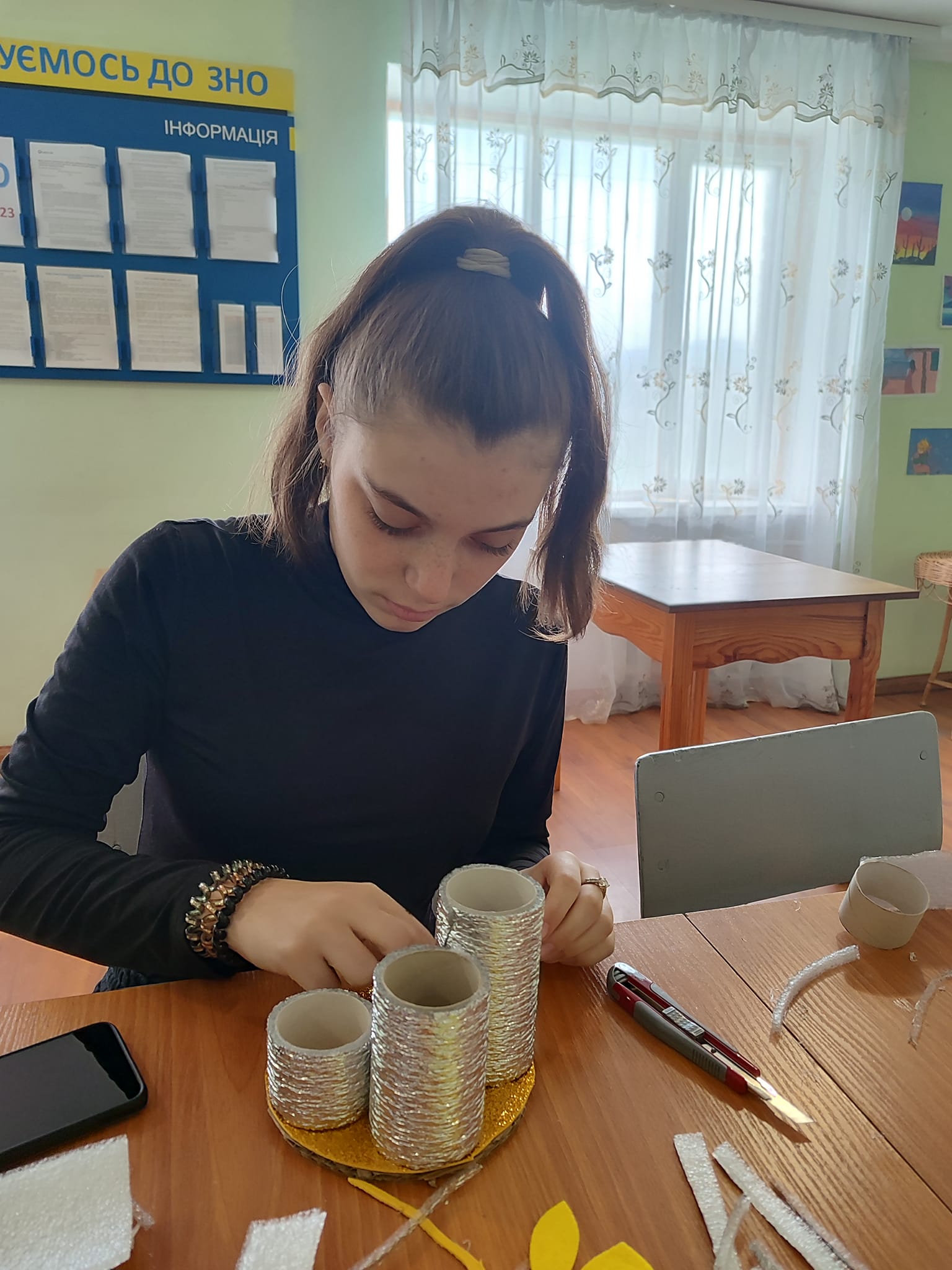 Учні гуртка “Народна творчість”,виготовляли пасхальні композиції,а саме “Органайзер для ручок”.Створюючи ці композиції наші учні насправді дуже старалися, адже, перш, ніж виготовити виріб, вони його продумували, самостійно використовували різні матеріали.Хочемо сказати, що ці вироби та елементи декору точно додадуть більше кольорів до вашого свята.