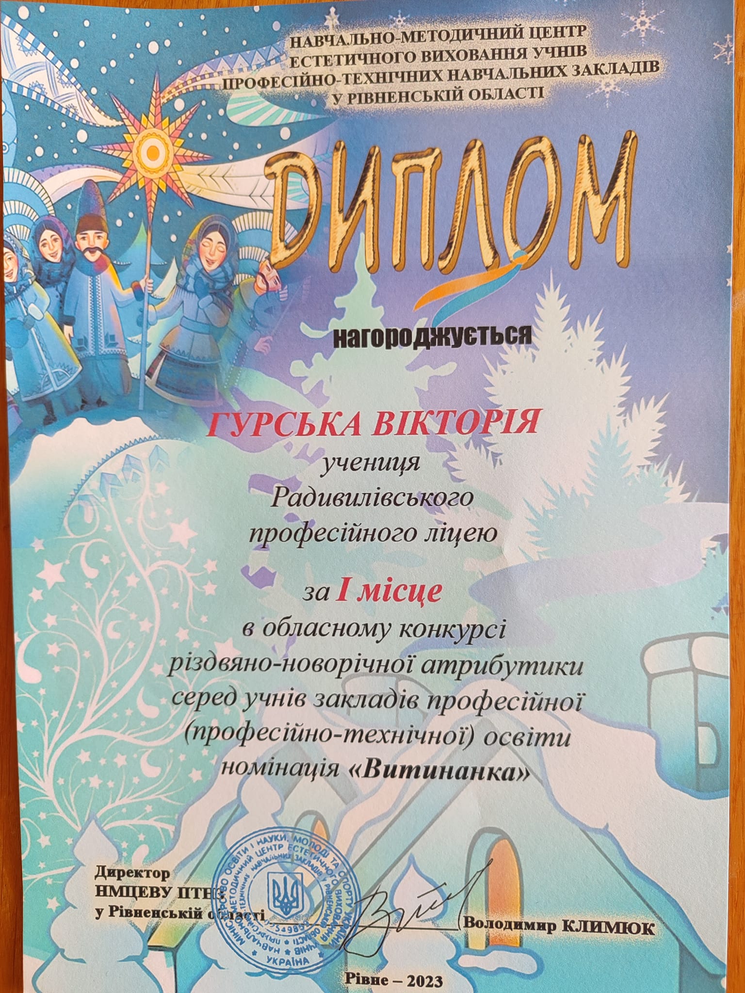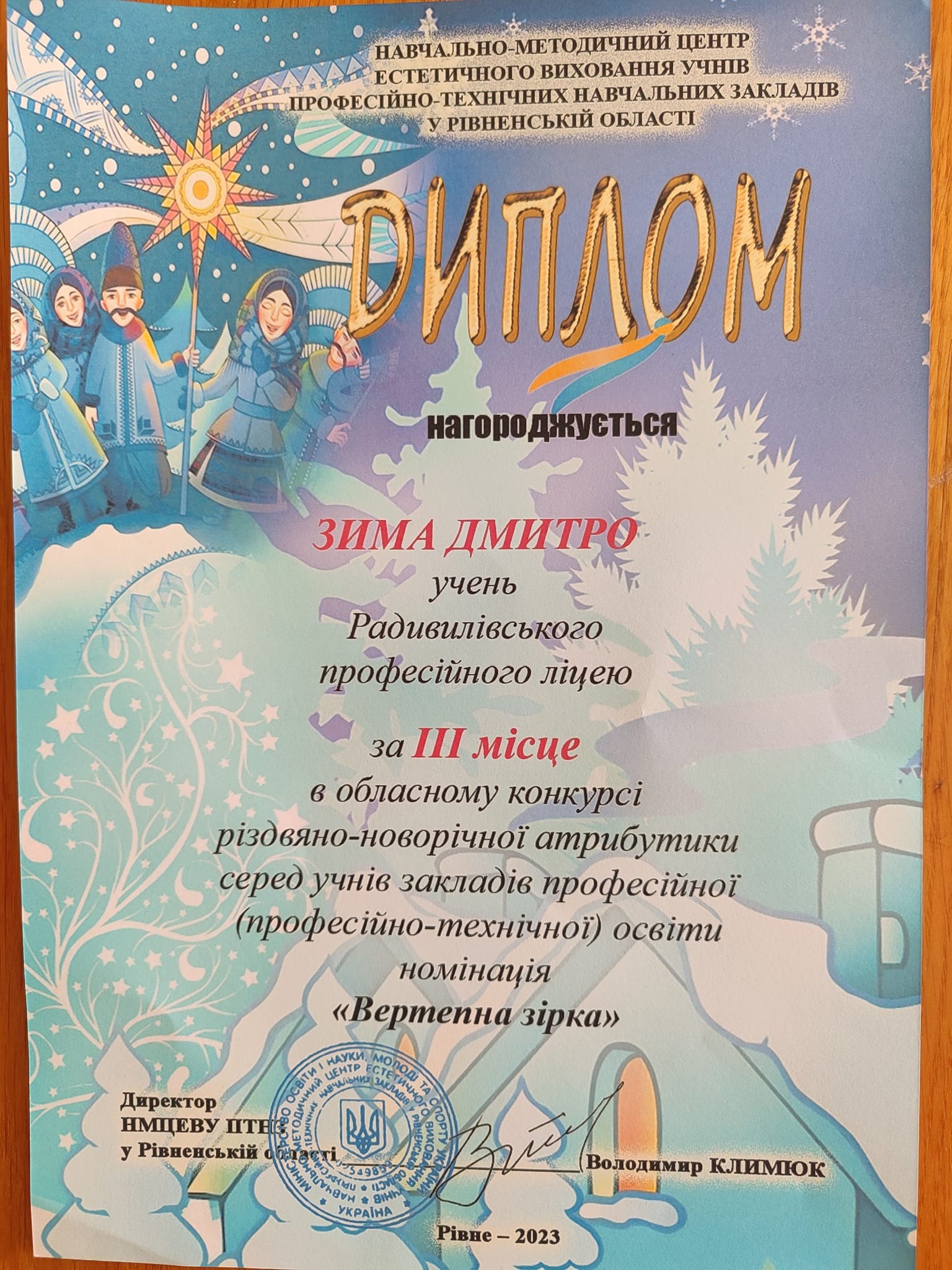 3 місце – Зима Дмитро, в номінаціхї « Вертепна зірка»
