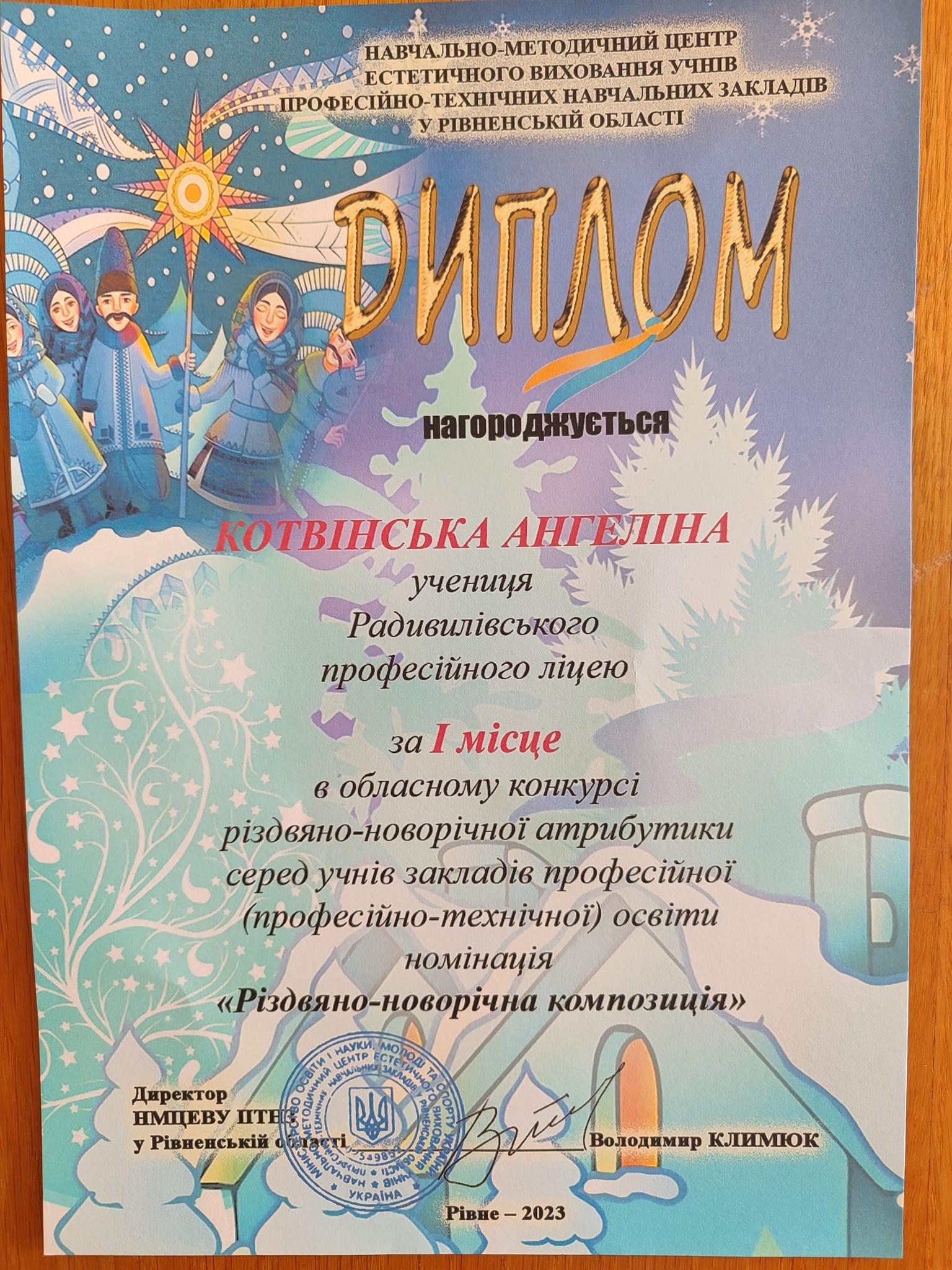1 місце – Котвінська Ангеліна, в номінації «Різдвяно – новорічна композиція»